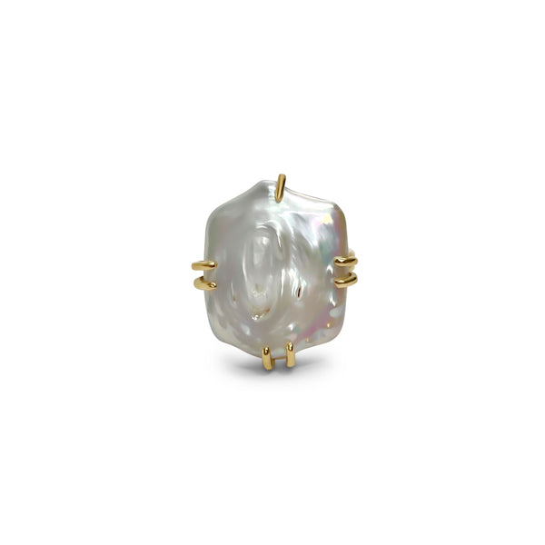 Design: This iridescent coin pearl ring makes a statement year-round. It is both soft and bold in its shape and color, making it a great transitional piece through the seasons. The gentle and asymmetrical coral-inspired setting will take you back to those warm summer days.