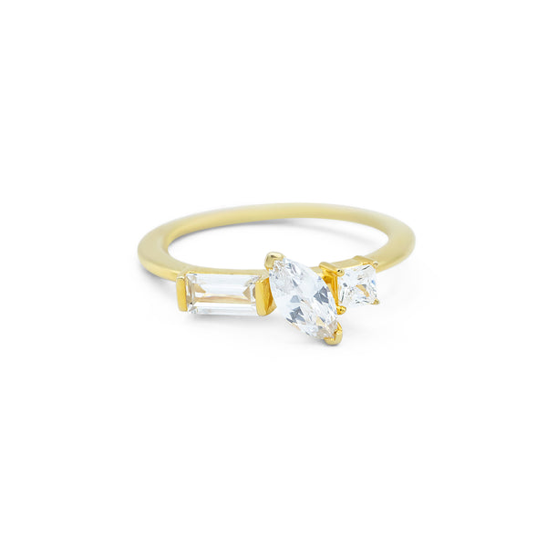 Design:  This exquisite fancy cut diamond ring features three different shaped diamonds, expertly set to create a unique and captivating design. Each diamond is carefully selected to showcase its brilliance, making this ring a stunning statement piece.