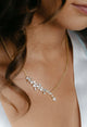 Design: A modern take on the diamond statement necklace. Here, a range of fancy cut diamonds are carefully selected, each for its own unique characteristics. Inspired by the concept of being seen for who you are, each piece in the Trellis collection imagines a time when not only are we recognized for our unique gifts, but also when we are supported, magnifying our essence even further. Mounted in individual settings and inventively joined, this necklace is designed to respond to the curves of your body. Drawing attention to areas above and below the neckline, it alluringly accents both. A single chain on the diamond encrusted side contrasts with a double chain, once again underlining the magnificence of diversity.