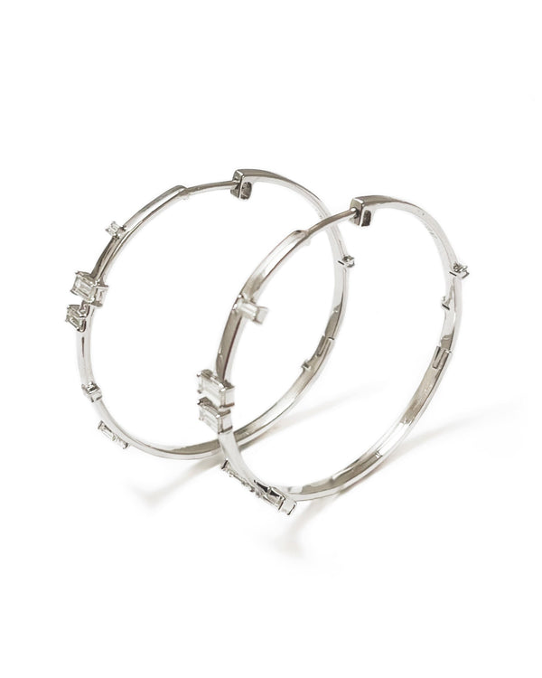 18k Baguette Hoops in White Gold - 18k White Gold / Natural Diamond / Small will be made to order. Please allow 2-3 weeks for this piece to be handcrafted. We'll keep you up to date with an expected delivery date.