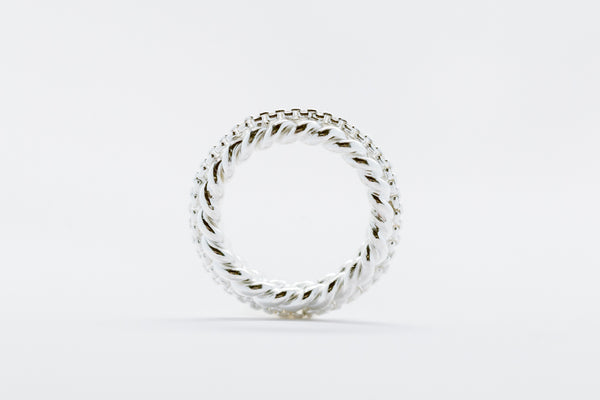 Design: Our link ring is designed with two sterling silver chains fused together, encircling the finger with a sense of eternity. Simple yet complex, this has become an instant favorite you'll be reaching for daily.