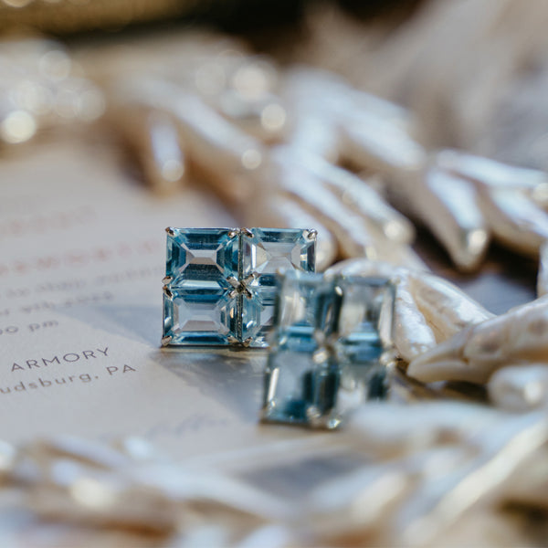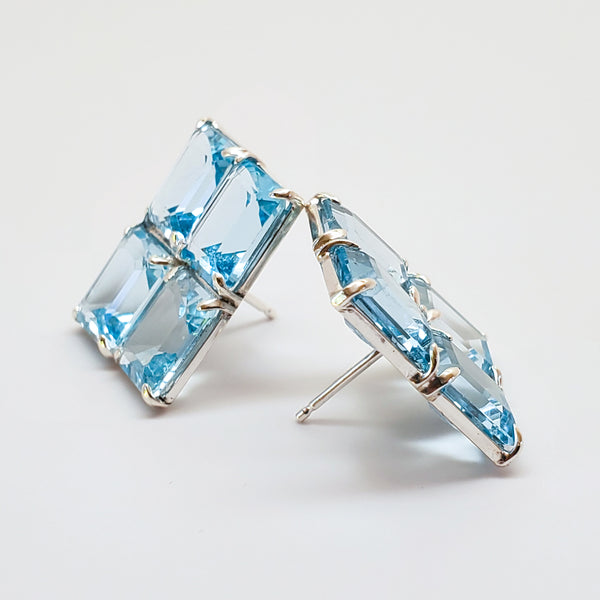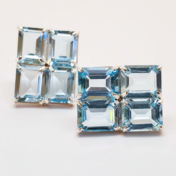 Grid Studs in Blue Topaz