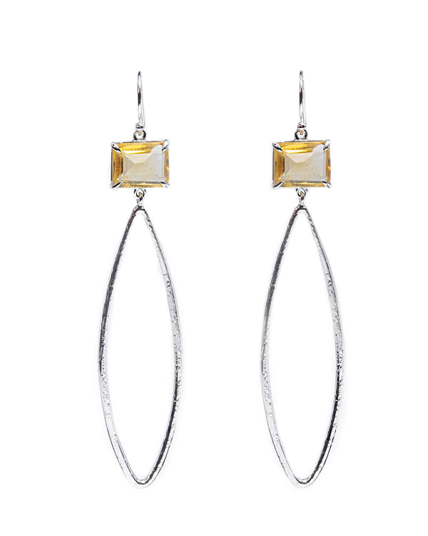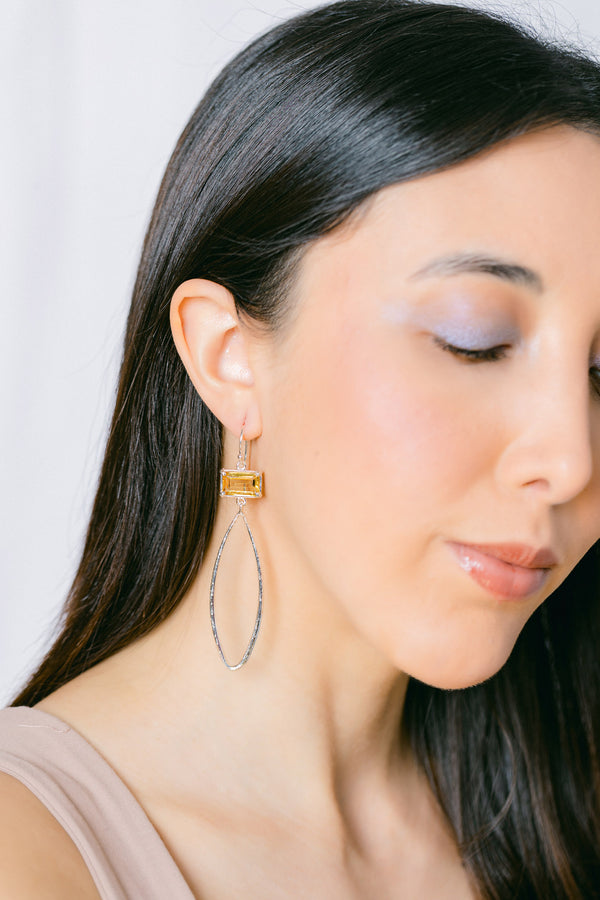 Design: One of our signature styles, the shimmer teardrop earring in citrine is a beautiful drop earring with a pop of yellow. The horizontal citrine stone balances the elongated textured sterling silver teardrop.
