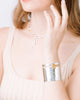 Style Suggestion: Wear with the offset stone to the outside to mimic the glint of a ring on your finger below, or add extra sparkle in the form of a ring for a perfect pairing.