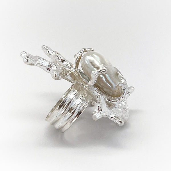 Note: Each pearl is unique, making every ring a one-of-a-kind and your piece received will vary slightly from the photos. Model is pictured with Signature Coral Ring 2.0 in Thai gold brass