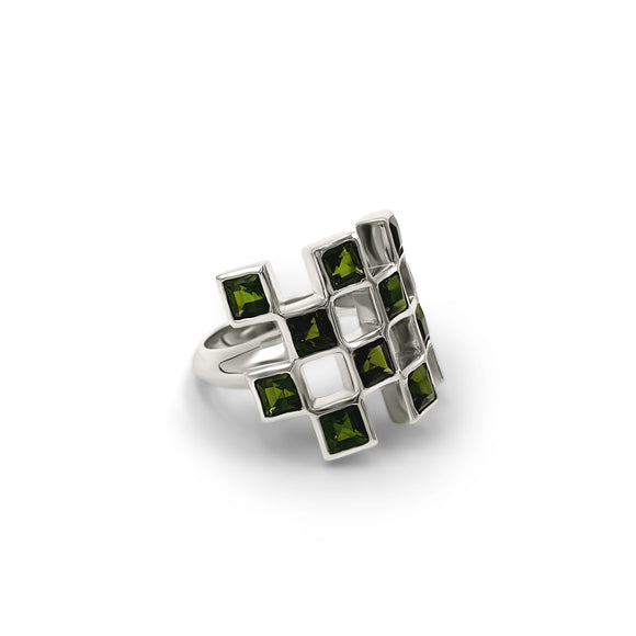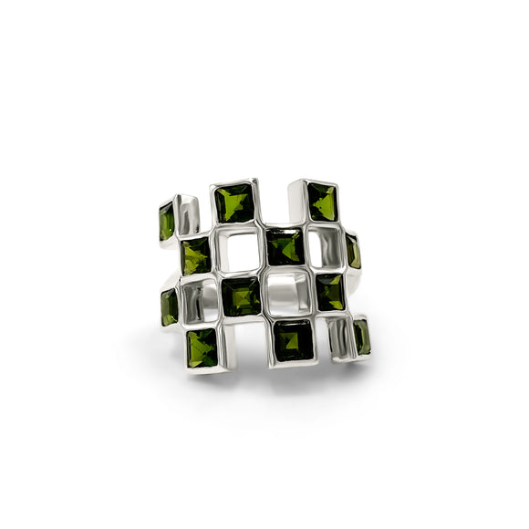 Green Tourmaline Checkerboard Ring